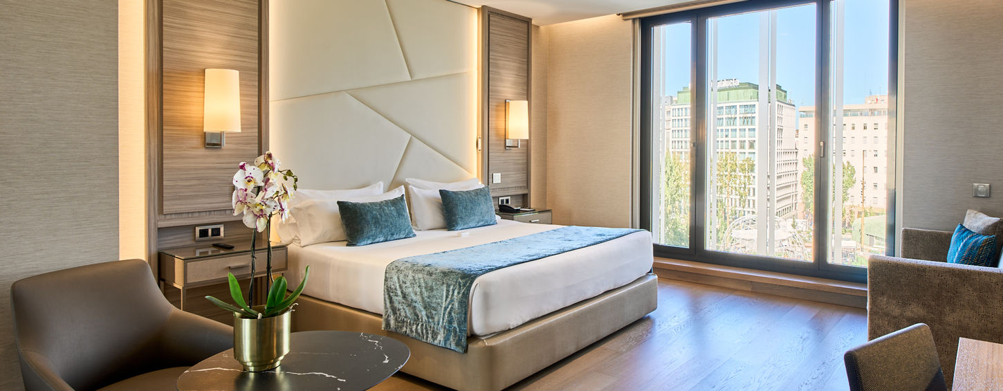 Arrival is effortless: Both hotels are located near Plaza de España metro station and just a 25-minute drive from Adolfo Suárez Madrid–Barajas Airport.